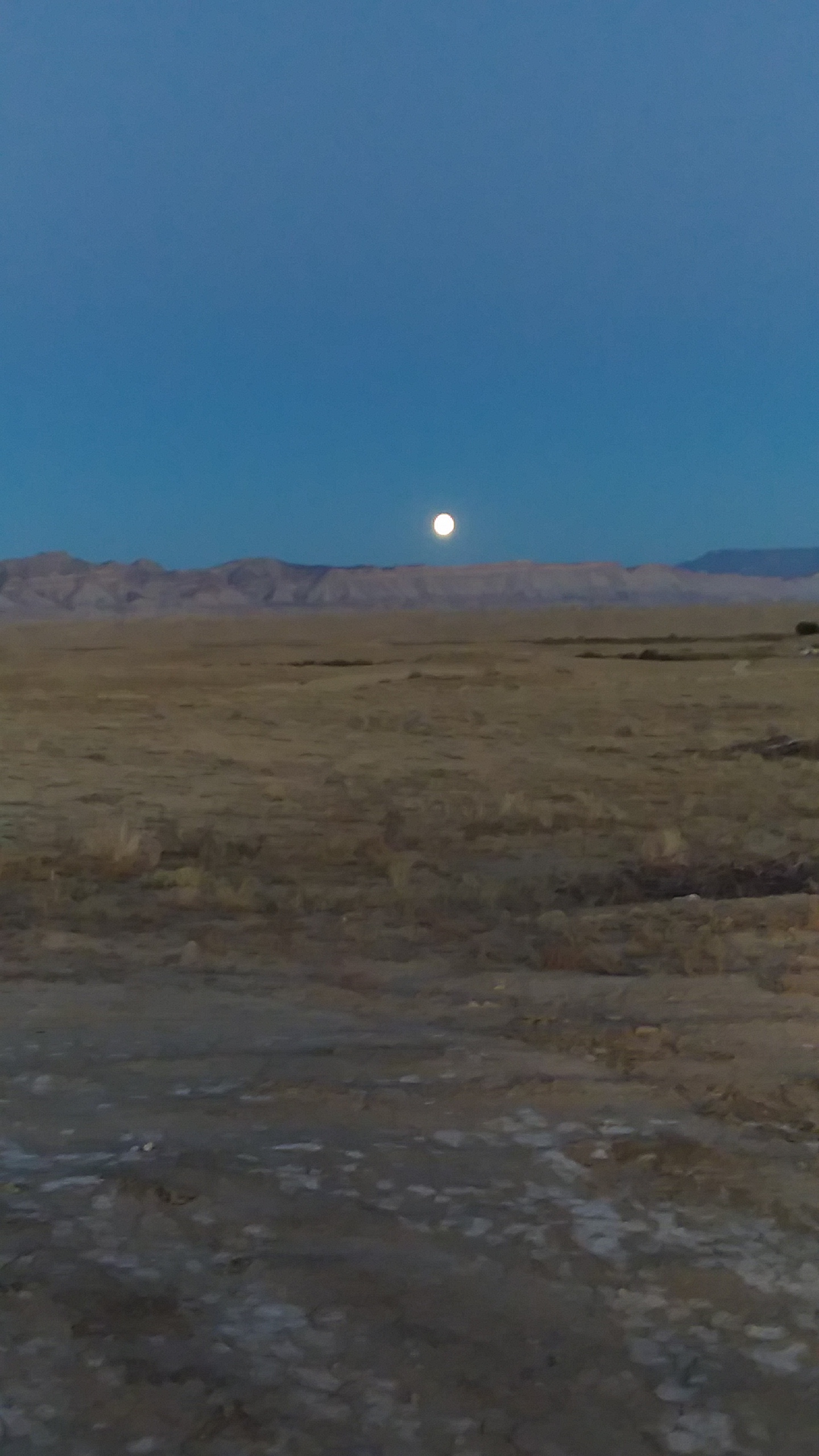 The antelope come out to graze, leery of the predators who are coming out now too. The full moon rises over the mountains, big and bright. A coyote howls in the distance. A hoot owl soars overhead looking for dinner. I take a deep breath. I take it all in. I don’t want to go but it’s time to head home. I leave the dirt road and turn onto the pavement towards the last light and oncoming traffic. The moon is behind me. Just another memory. It’s someone else’s moment now….