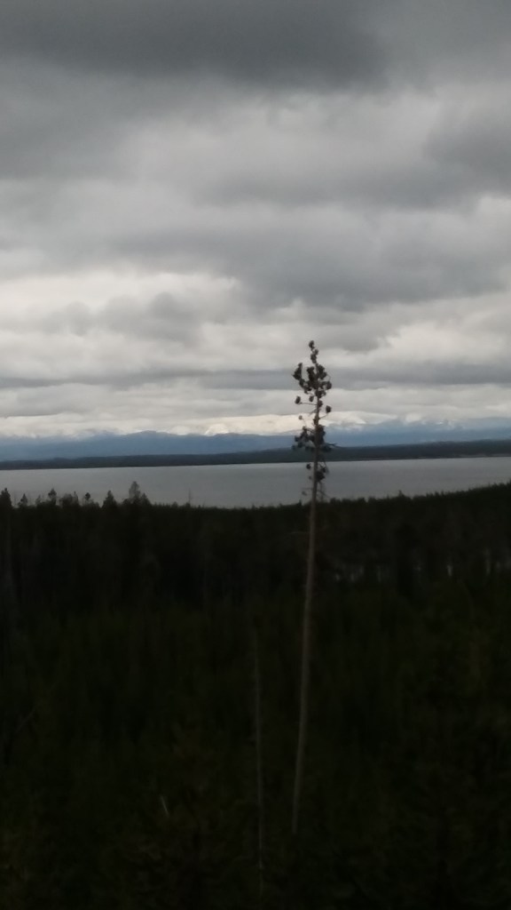 We moved down to Lewis Lake campground for two more nights. The weather began to move in as soon as we got there. It was going to snow. I could smell it. The first night, it rained hard and it was extremely windy. The next morning, the snow came. It snowed for a few hours. At one point, it was a blizzard. We went to Grant village to get breakfast and coffee. It drizzled and was cold all day but we didn’t let that stop us. We went to see the Old Faithful geyser as well as the Grand Prismatic Spring. It stopped raining and we went back to camp. Around dinner time, the clouds started to clear and it got cold. We woke in the morning to a quarter inch of ice on the inside of the tent. There was thick frost all over the truck as well. The sun came out. The last day was the best day. We decided to hike to Lone Star geyser. It was five miles round trip in thick woods, in bear country. The weather was perfect. We made it just in time! The geyser went off for five minutes. Boiling water shot up about fifteen feet. It was just a warm up. About ten minutes later, the geyser erupted again. This time, boiling water shot up thirty feet and it lasted almost twenty minutes.
